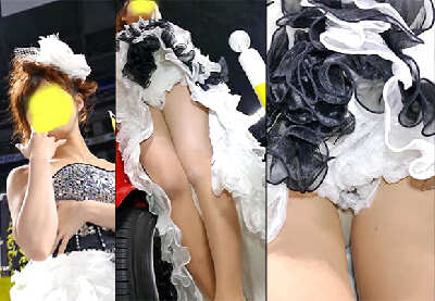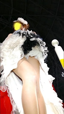 ロンスカなのに前だけ激ミニ衣装をローアングル!