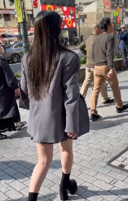 かなりスカートが短い若い女の子です。おそらく女子大生く