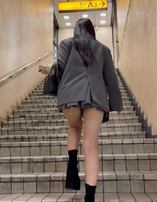 この短さで階段をのぼるので当然追跡。裏地があるスカート