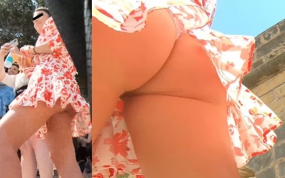 まず一人目は友達とのグループで有名な観光地に遊びに来ていた美女です。花柄のひらひらと捲れやすいミニワンピで観光中のせいもあってか隙まみれで撮り放題です。白のTバックを何度も捉える事に成功しているのはもちろん、友達の体の間からフロントパンチラの撮影にも成功しています。