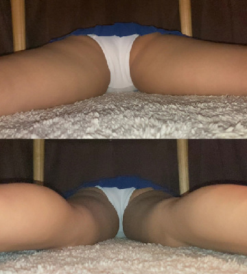 むちむちの両脚に挟まれたまさかの純白ショーツ