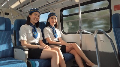 公共交通機関で通勤中の複数名のCA風のおねえさんたちの動画集 その2。