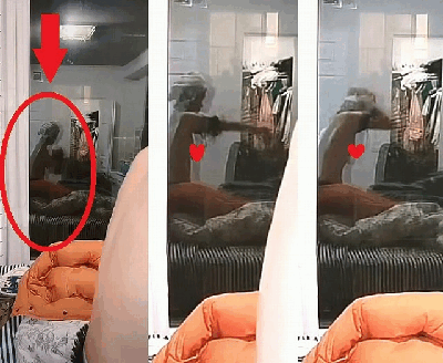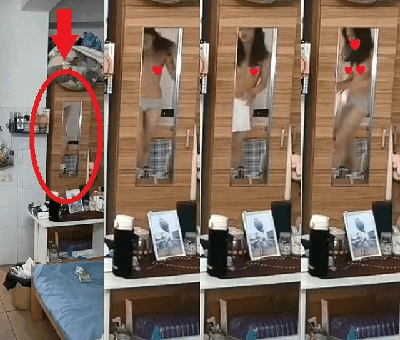 と思っていたら完全に隠れきれずに自分の姿が映ってしまい下着や肌が露わに。