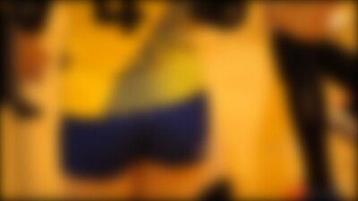 青と黄色のストライプが映えるユニフォームが汗で軽く張り付き、ストレッチで前屈みになるたびに浮かぶブルマのライン。