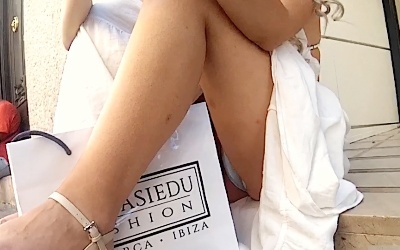 どちらも純白ワンピースに身を包んだ上玉女子です。一人目はアパレルの店先に無防備に座り込んでスマホをいじっていた美女。隣の中年おじさんもその美女をガン見している中、思い切って接近して座りパンチラ撮影。怪しまれるかと思いましたが、どうやら全く相手にされていなかったようではだけたスカートと紙袋の隙間から生パン撮り放題という美味しい状況でした。背中から胸元がざっくりと開いた大胆な衣装だったのでそういう意味でも楽しんで頂ける映像です。