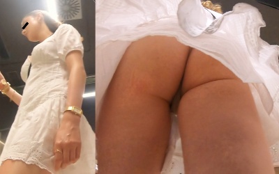 続いて登場する金髪娘は彼氏と買い物中のようでしたが純白ワンピースに合わせてスカートの中も純白Tバックで撮影に参加してくれた為良い絵を収めることができました。