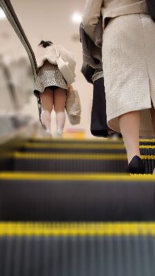 エスカレーターを降りる刹那、風圧で再びヒラリと翻ったスカートの下から、