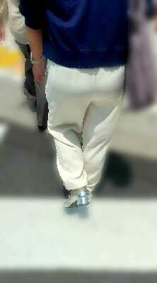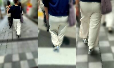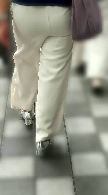 引き締まった小尻がピタっと張り付いた白スラックスが動く様子を観察することができます。