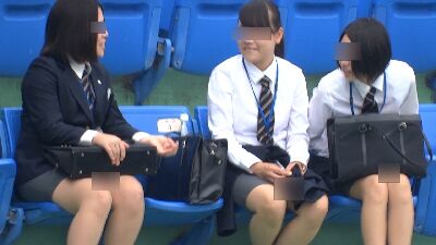 お友達と一緒。制服女子JKの逆さ撮りローアングル