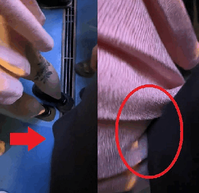 その揺れに乗じて自分の股間を女性のお尻にタッチ!