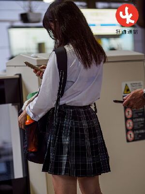 制服女子の登校風景。青いチェックスカート少し風が強かった日