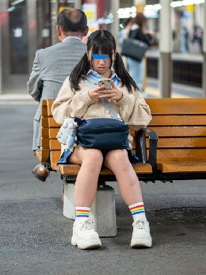 Street snap 011 駅のベンチに座っているシチュエーション限定顔モザ無