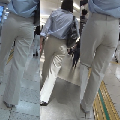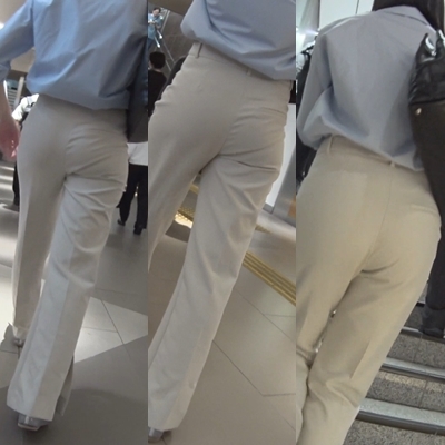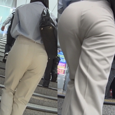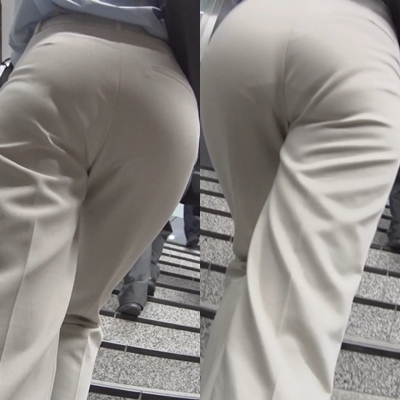 尻追尾42*階段で見上げる長身スレンダーな白スラックス美尻お姉さん