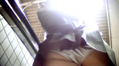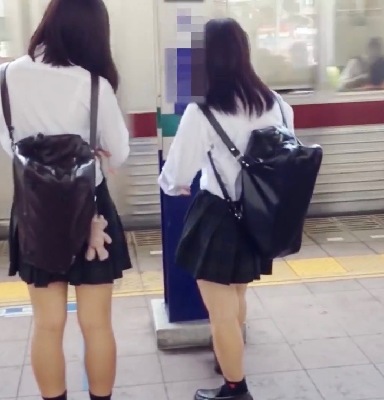 電車にて小柄でかわいいミニスカJKを発見,スカートがかなり短く、程よくムチムチで顔を見てるだけ