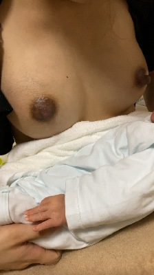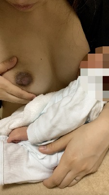 片方の手を添えながら授乳。