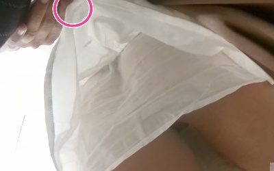 そしてついに私がスカート捲りに手を出してしまった回となります。それは1人目の白のひらひらミニスカートモデルのパートです。何と言うか、店内ですごく無防備な雰囲気だったんです。なので後ろからそっとスカートを捲りながら撮影してやりました。とはいっても短時間ですし、裏地付きスカートということもあって、スカート捲りがそこまで撮影に貢献してくれた感じはありませんでしたが。
