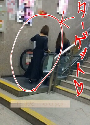 人気のないエスカーレーターに乗るお姉さん二人組──