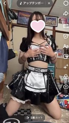 そしてメイド服で腰を振りながらアヘ顔ピースからのおっぱい丸出しにアヘ顔白目で舌を出しながら腰を上下に動かしチン媚びダンスを下品に披露してくれます。