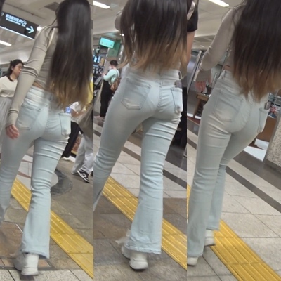 薄手のデニパンがパツパツ状態のセクシー美尻女子!