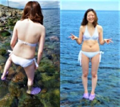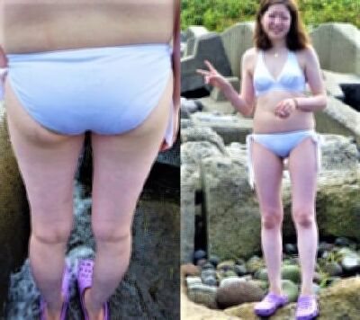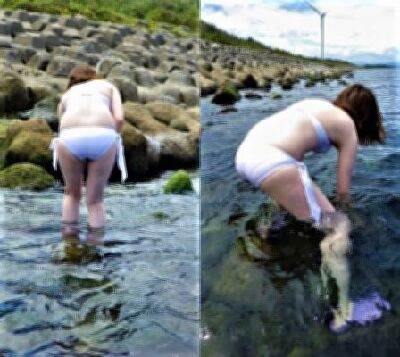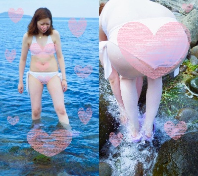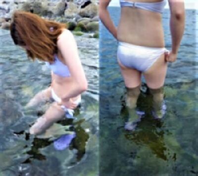 白ビキニで海遊び中を撮影しました。