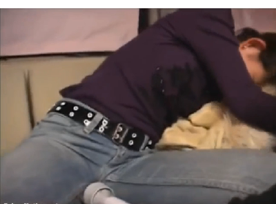 注目すべきは右の可愛い女の子!ジーンズの上からの電マ攻撃で絶頂してしまうのです。